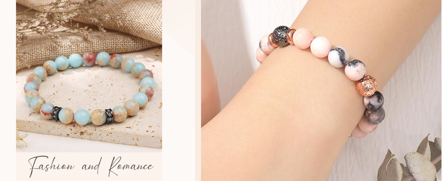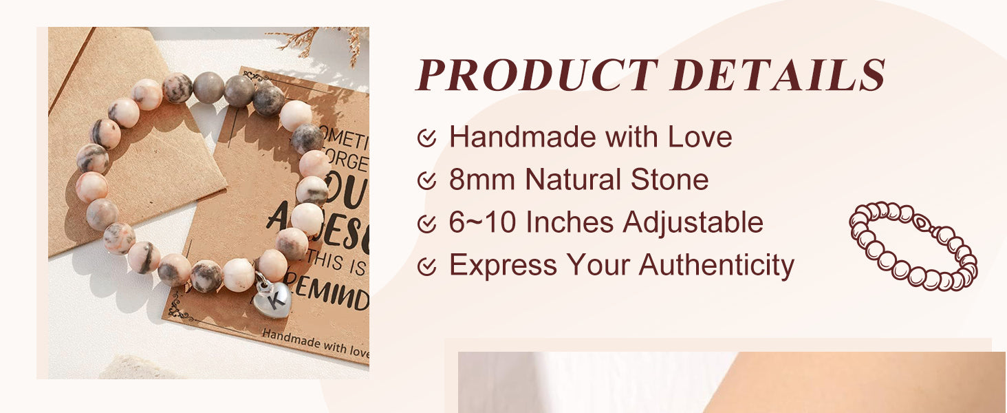 - Materiales únicos: Elaboradas con piedras naturales únicas, no hay dos pulseras iguales; el color de la piedra puede variar respecto a las imágenes, lo que realza su carácter único. Esta sutil singularidad hace que cada pulsera sea tan especial como los momentos que celebra