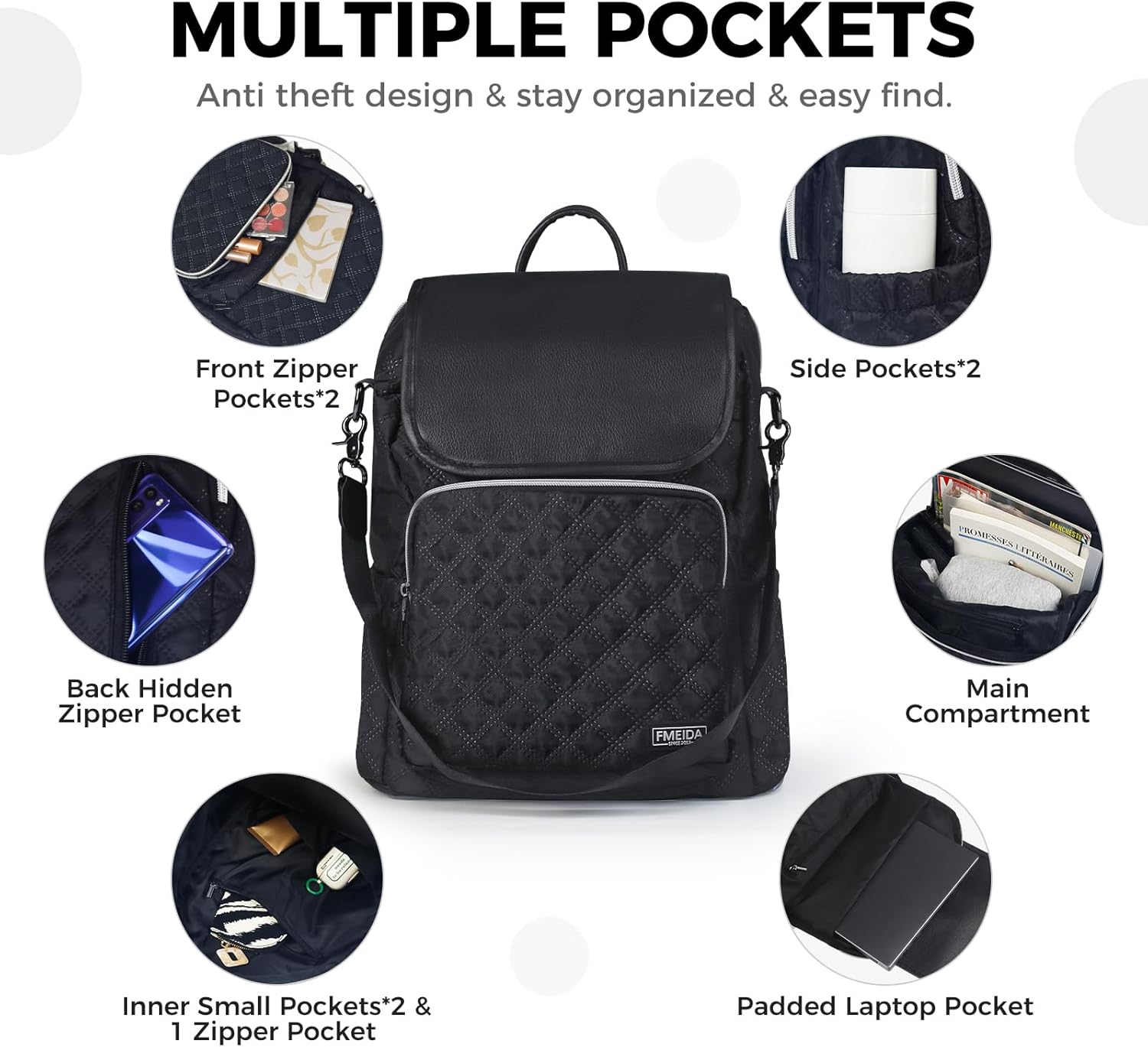 Fmeida Backpack for Women Work Backpack College Bookbag Anti Theft Daypack Carry on Back Pack Black