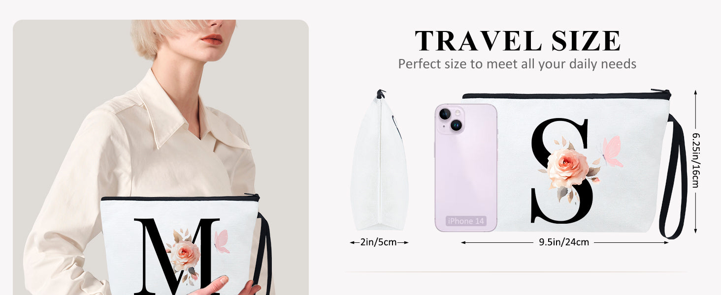 - Gifts for Women: Elevate your gift-giving with personalized makeup bags; crafted for mothers, grandmothers, teachers, and friends; each pouch features a personalized initial for a lasting impression; a testament to her uniqueness