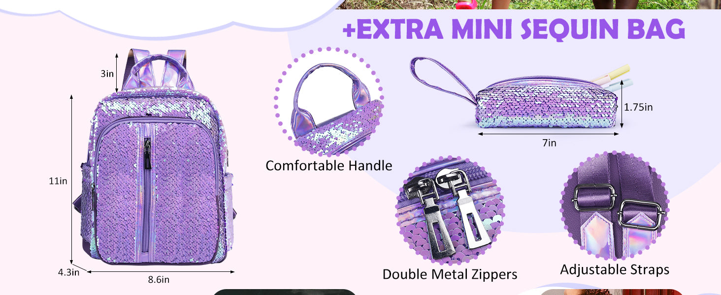 - Versatile Style Companion - Whether you're attending social gatherings, going on weekend adventures, or simply strolling through town, our kawaii sequin backpack is the perfect fashion accessory. Its sophisticated design adds an elegant touch to any outfit, making you stand out with effortless style.